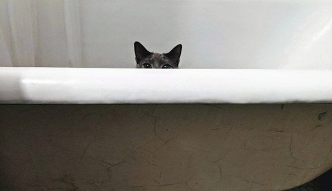 2. Bathe your cat in a sink or a basin if possible